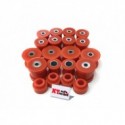 Kit complet de silentblocs en polyuréthane pour tous les bras tirés et barres panhard du Suzuki Jimny. Le kit comprend tous les silentblocs pour les bras tirés avant et arrière ainsi que pour les barres panhard. Version OFFROAD (dureté similaire aux silentblocs d'origine pour maintenir un bon débattement des suspensions).POUR SUZUKI JIMNY (TOUTES ANNEES)