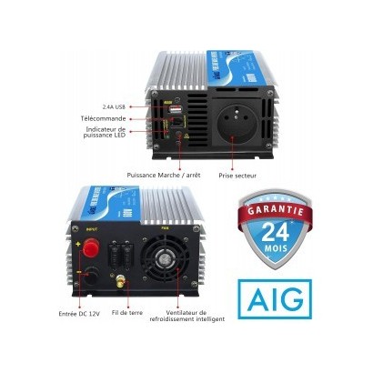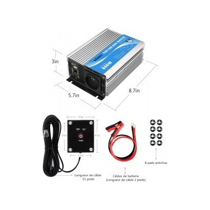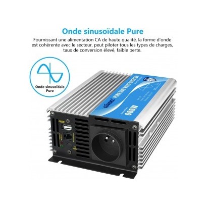 Convertisseur Pur Sinus 600W 12V 220V avec USB et Télécommande
