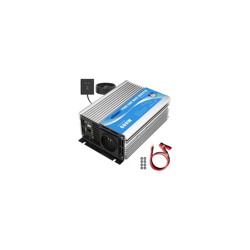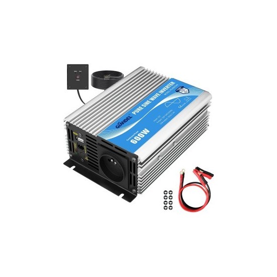 Ce convertisseur pur sinus de 600W transforme une tension continue (DC) de 12V en une tension alternative (AC) de 220V à 230V. Il est conçu pour fournir une alimentation stable et propre à divers appareils électroniques, comme des ordinateurs portables, des appareils photo, des smartphones, ou autres équipements nécessitant une alimentation en courant alternatif.