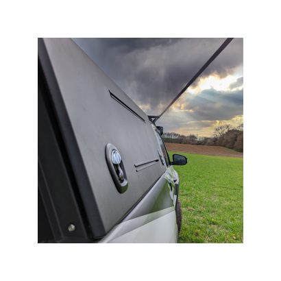 Le toit du HARDTOP 2 Rockalu est fabriqué à partir d'un panneau en aluminium de haute qualité, offrant une grande résistance et durabilité. La finition en aluminium offre un look élégant et moderne qui convient à tout type de pick-up.