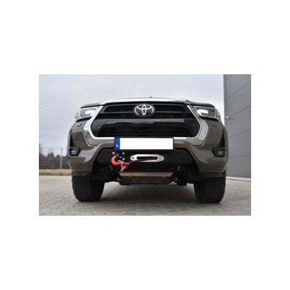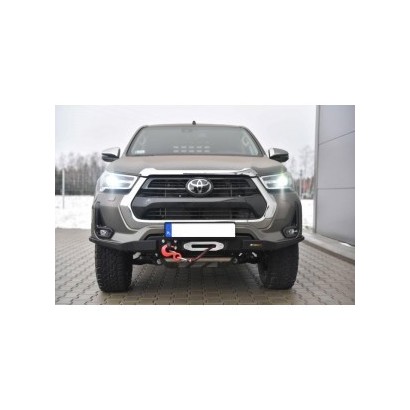Pare-chocs avant, dédié au TOYOTA HILUX REVO 2020 A PRÉSENT. La structure du pare-chocs est en tôle de 4 mm d'épaisseur, et les fixations au châssis sont en tôle de 5 mm d'épaisseur. Le produit est d'abord découpé au laser, puis plié sur une presse plieuse CNC, et la forme correcte est obtenue lors de la finition manuelle.