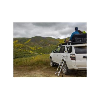 Une échelle télescopique qui s’étend jusqu’à 2,6m. L’échelle a neuf marches pour atteindre le toit de votre véhicule pour charger des objets et de l’équipement sur la galerie.
