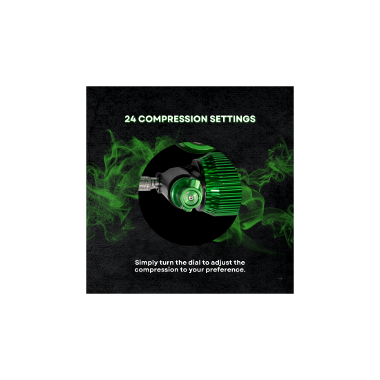 24 compression settings* = 24 paramètres de compression ; tournez simplement la molette pour ajuster la compression selon vos préférences.