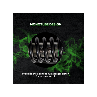 monotube design* = conception monotube ; offre la possibilité de faire fonctionner un piston plus gros pour un contrôle supplémentaire.