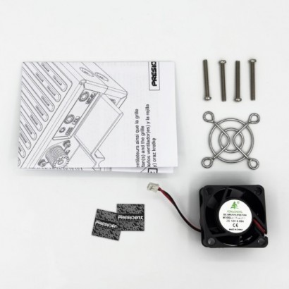 Contient : un ventilateur; une grille de protection; 4 vis; 2 étiquettes de garantie; 1 manuel.